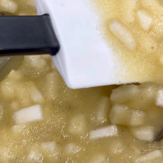 Riscaldare la purea di pere a 45°C. Aggiungere la polvere e mescolare.
